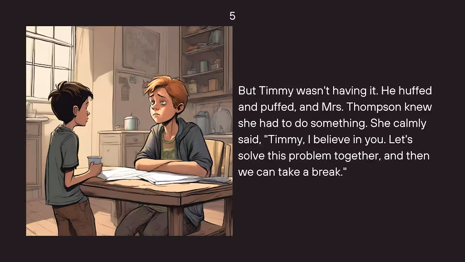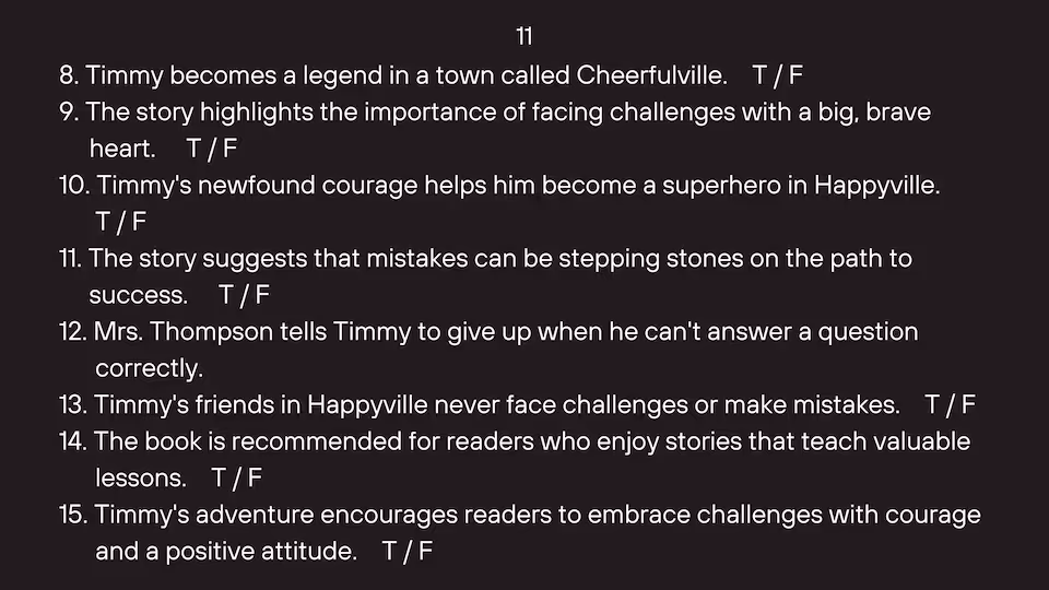 Opowiadanie ukazuje historię 10-letniego chłopca o imieniu Timmy, który mimo bycia bardzo inteligentnym, musi nauczyć się kontrolować swoją złość, gdy daje złe odpowiedzi w klasie, a jego nauczycielka, Pani Thompson, pomaga mu odkryć siłę w akceptowaniu błędów i pokonywaniu wyzwań z odwagą i pozytywnym podejściem. Ebook zawiera także: