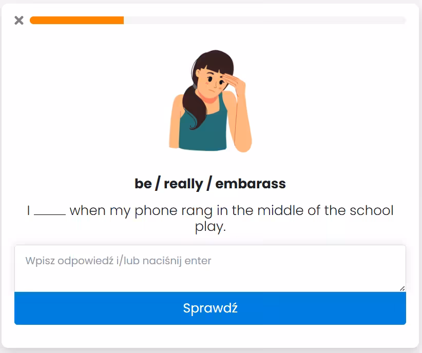 Kurs fiszkowy pozwalające ćwiczyć uzupełnianie luk w zdaniach podanymi wyrazami w odpowiedniej formie. Z humorem, zrozumiale i skutecznie!