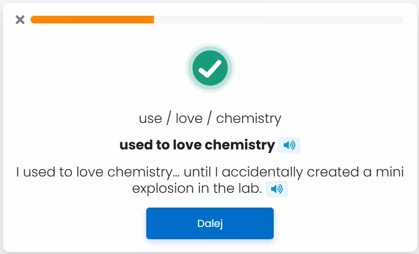 W tej części kursu znajdziesz 95 zabawnych i codziennych zdań z życia nastolatków związanych ze szkołą i nauką. Uczniowie trenują użycie czasów Past Simple, Past Continuous i konstrukcji used to, a przy okazji powtarzają słownictwo z rozdziału „Edukacja” z Repetytorium Macmillan. W zdaniach pojawiają się pytania o informację, odpowiedzi, opisy szkolnych zwyczajów z przeszłości i sytuacji z lekcji, przerw i wycieczek.