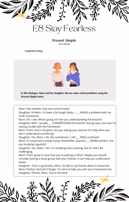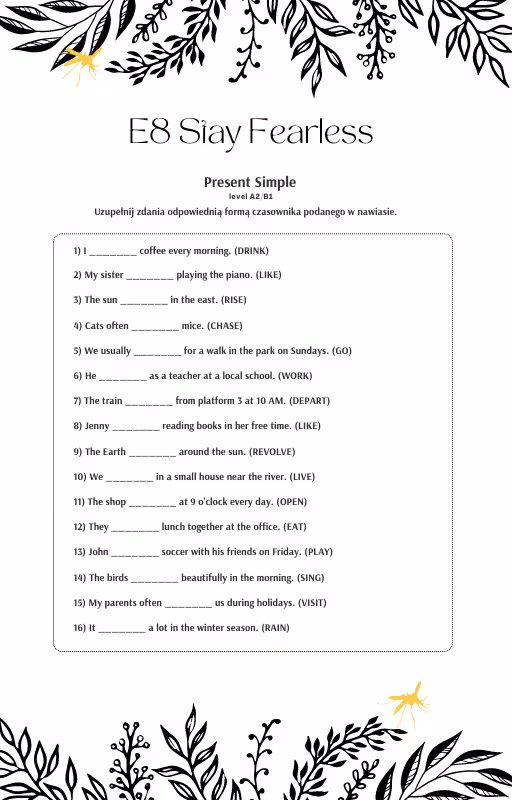 - ćwiczenia utrwalające stosowanie czasu (uzupełnianie luk w tekście, uzupełnianie dialogu, opis obrazków)