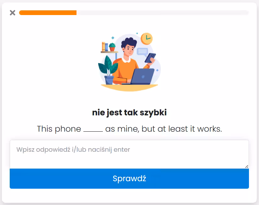 Dzięki fiszkom uczniowie uczą się nie tylko poprawnej budowy zdań, ale też przydatnych słówek i naturalnych zwrotów. Kurs idealnie nadaje się do powtórki przed egzaminem ósmoklasisty i utrwalania gramatyki w atrakcyjny sposób.