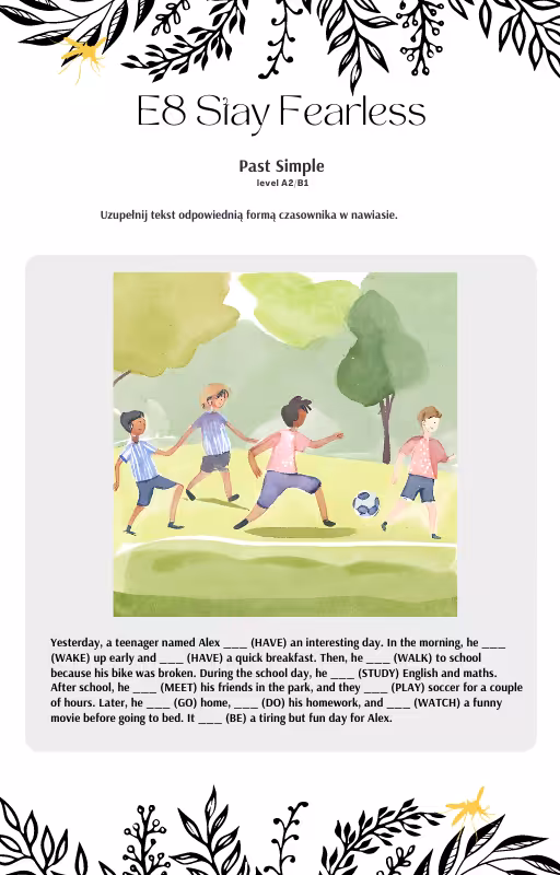 - ćwiczenia utrwalające stosowanie czasu ( uzupełnianie luk odpowiednią formą czasownika podanego w nawiasie, opis obrazków)